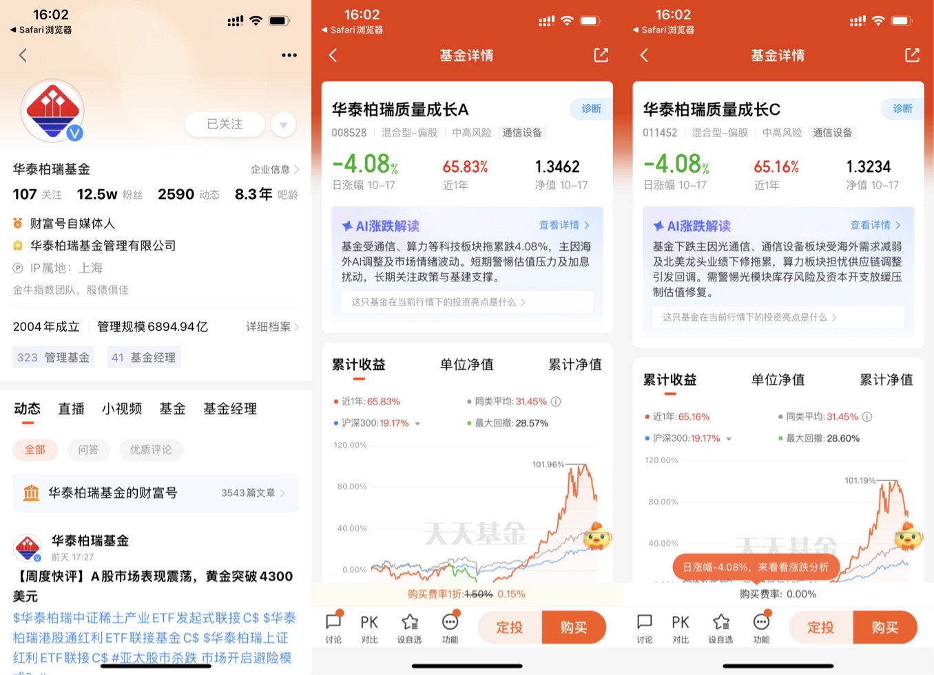 当然,我也非常清醒地知道,投资这条路,永远伴随着风险。尤其是人工智能、机器人这些新兴产业,发展道路绝不会一帆风顺。技术的瓶颈、高昂的成本、激烈的竞争、市场的波动,还有那些意想不到的“黑天鹅”……都是实实在在的挑战。但内心深处,我依然抱有一个信念:就像20年前押注互联网改变世界,10年前拥抱新能源浪潮一样,把握住人工智能这条清晰的时代主线,长期来看,或许正是我们这些普通人在历史洪流中,能够参与并分享这场深刻生产力跃迁的一种方式。毕竟,当科技真正赋能生产、解放劳动者时,它所创造的,绝不仅仅是冰冷的效率数字,更是温暖人心的——希望。$华泰柏瑞质量成长C$ $华泰柏瑞质量成长A$ @华泰柏瑞基金