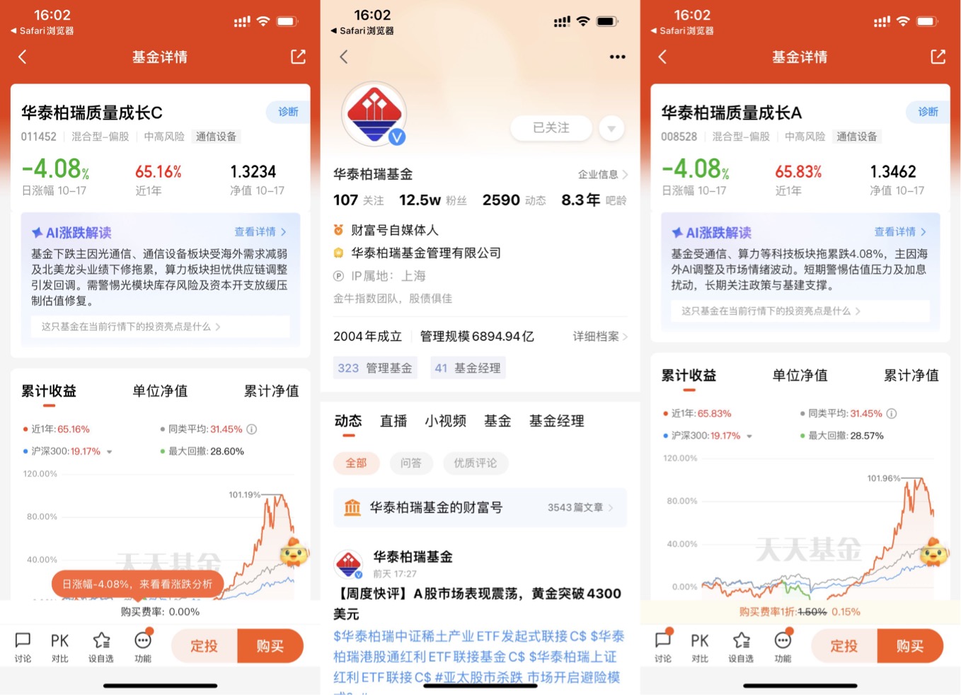 我自己在实际投资中,就是配置了5%左右的人工智能主题基金——华泰柏瑞质量成长混合基金(A:008528,C:011452)。翻看这只基金最新的二季度持仓,像新易盛这类通信设备龙头就深度参与CPO业务,还有其他重仓的信息技术企业,也在往光通信、算力硬件方向靠。而且它不只押注CPO,还搭配了高端制造、消费电子里的绩优股,比如春风动力、匠心家居、小米集团,既能享受到CPO的弹性,又能靠这些稳健标的对冲风险,非常适合我这种中等风险承受能力的投资者,又可以为自己的资产组合提供一些进攻性。
