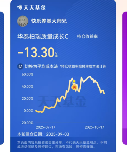 9月初开始建仓的这只基金,华泰柏瑞质量成长C(011452),截止目前,收益率-13.30%。调整之后,我一直在犹豫,要不要加仓。
