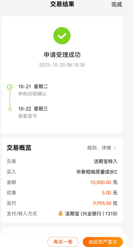 优秀的主动基金经理是珍稀资源,一旦发现了就不能错过,本次加仓1万元。后续若遇调整,继续加仓,越跌越加。