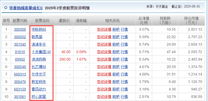 从华泰柏瑞质量成长的最新持仓来看,陈经理虽然高度关注AI方向,但没有重仓单一的细分方向,除了CPO,前10重仓中,还有小米,泡泡玛特,匠心家居这类企业。陈经理在调研中,还分享了除AI之外他关注的三个领域: