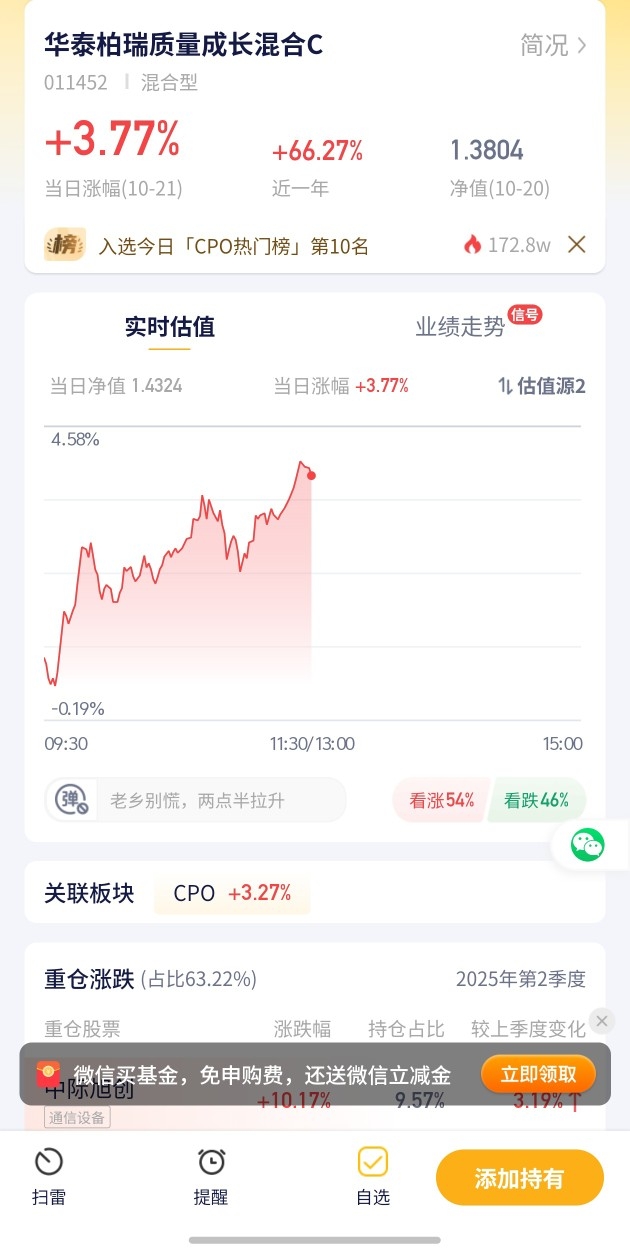 华泰柏瑞质量成长混合C今日预估涨幅+3.96%!质量成长赛道今天表现亮眼,持仓小伙伴偷着乐~
