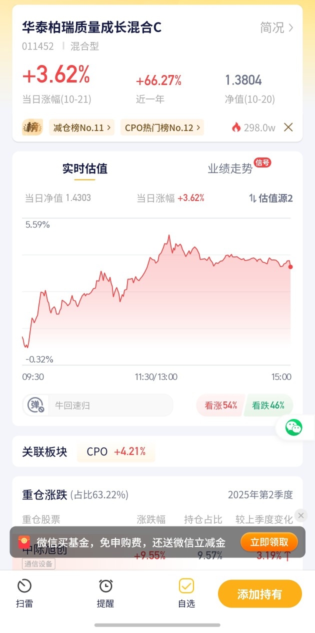 华泰柏瑞质量成长混合C今日预估涨3.62%!质量成长板块表现亮眼,这只基金涨势不俗,偏好成长风格的可多留意~
