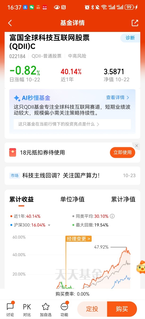 我同时拿着华泰柏瑞质量成长C和富国创新科技C,后者最近真争气!重仓光模块、AI算
