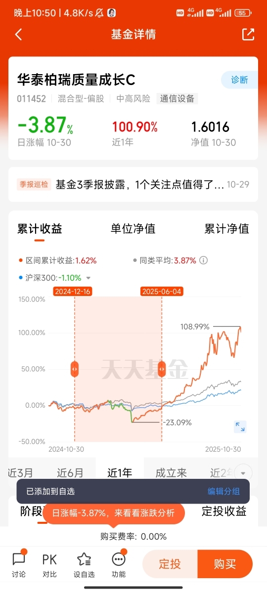 还要注意两个点:一是别追热点,AI板块可能会有短期震荡,遇到回调不用慌,反而可以趁机加仓;二是看长期,不用天天盯着净值波动,拿着一两年以上,才能更好地享受行业成长的红利。华泰柏瑞质量成长C聚焦“质量+成长”,选的都是基本面扎实的公司,正好契合AI行业长期发展的逻辑,适合想稳健布局的投资者。