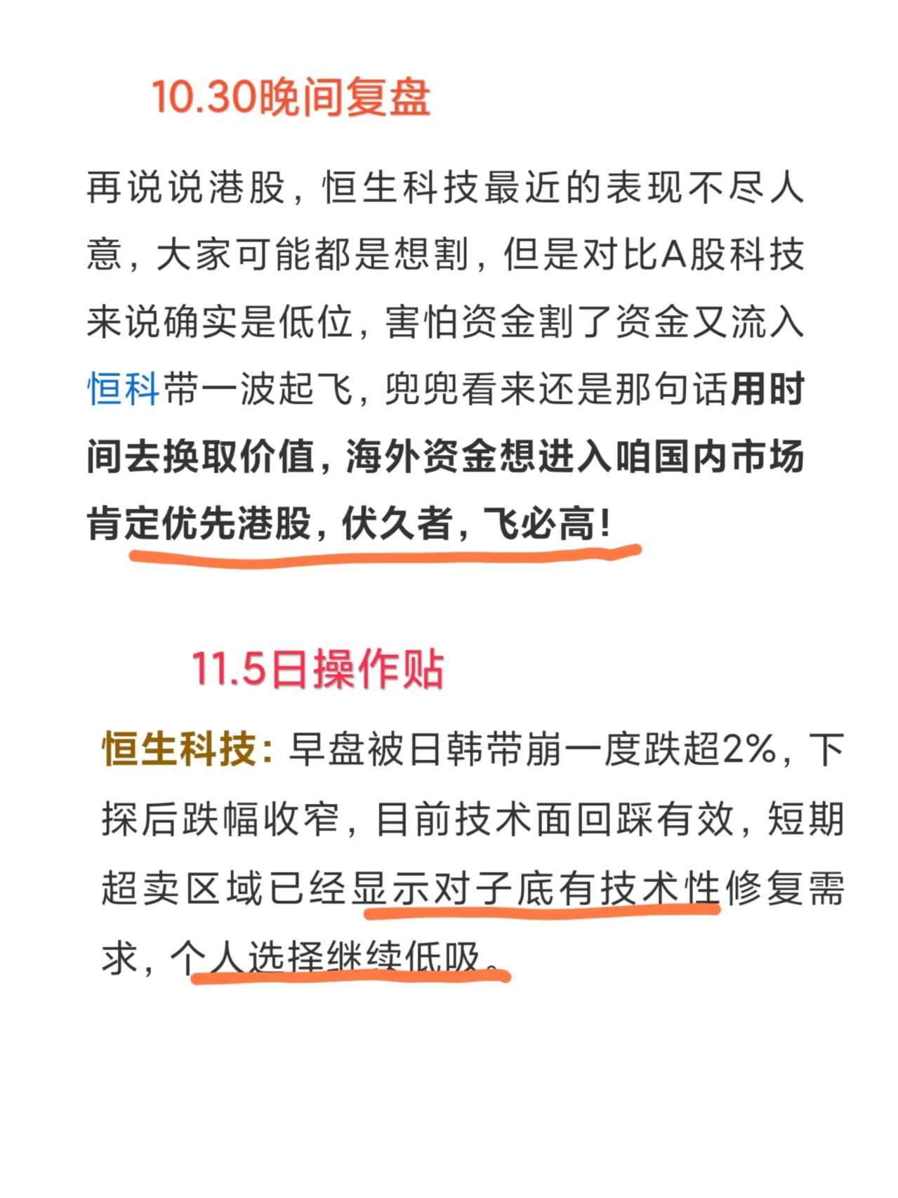 再说说港股,兜兜在30号晚间复盘提及——不要割,飞必高;5号操作中提及恒生科技可以低吸了,今天涨幅接近3%,总算不辜负,咱还是接着拿,趋势刚转好。