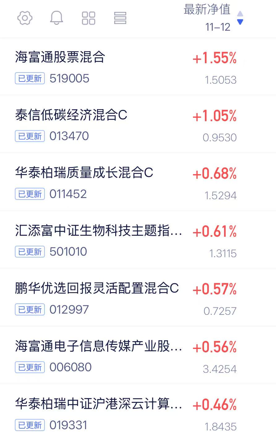 $海富通股票混合$ 今天上涨1.55%,这个绝了,最近一周也就昨天绿了,近一个月11.86%,近半年64.91%在同类里面也是一马当先的