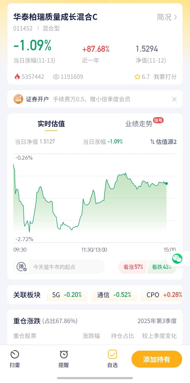 10. 【华泰柏瑞质量成长混合C估值播报+11.13行情】