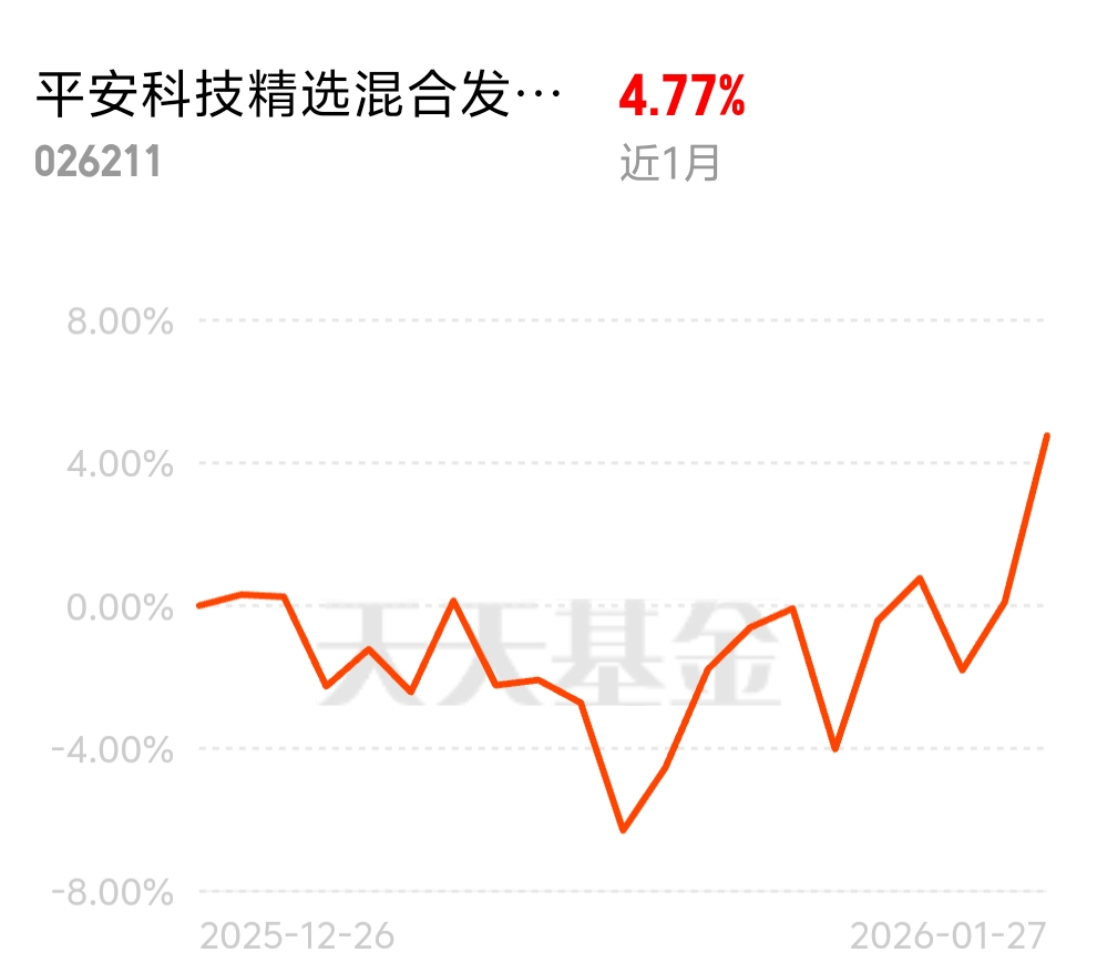今天CPO又给力了。$平安科技精选混合发起式C$涨4.67%,表现挺好。
