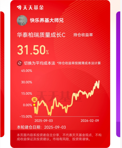买完之后,没过多久,市场来了一轮凶猛的调整,此基的亏损率迅速超过10%。心中咯噔一下,以为自已刚好买在了山顶,可能几年回不了本。然而,160天之后,回首再看,居然有31.50%的收益率!