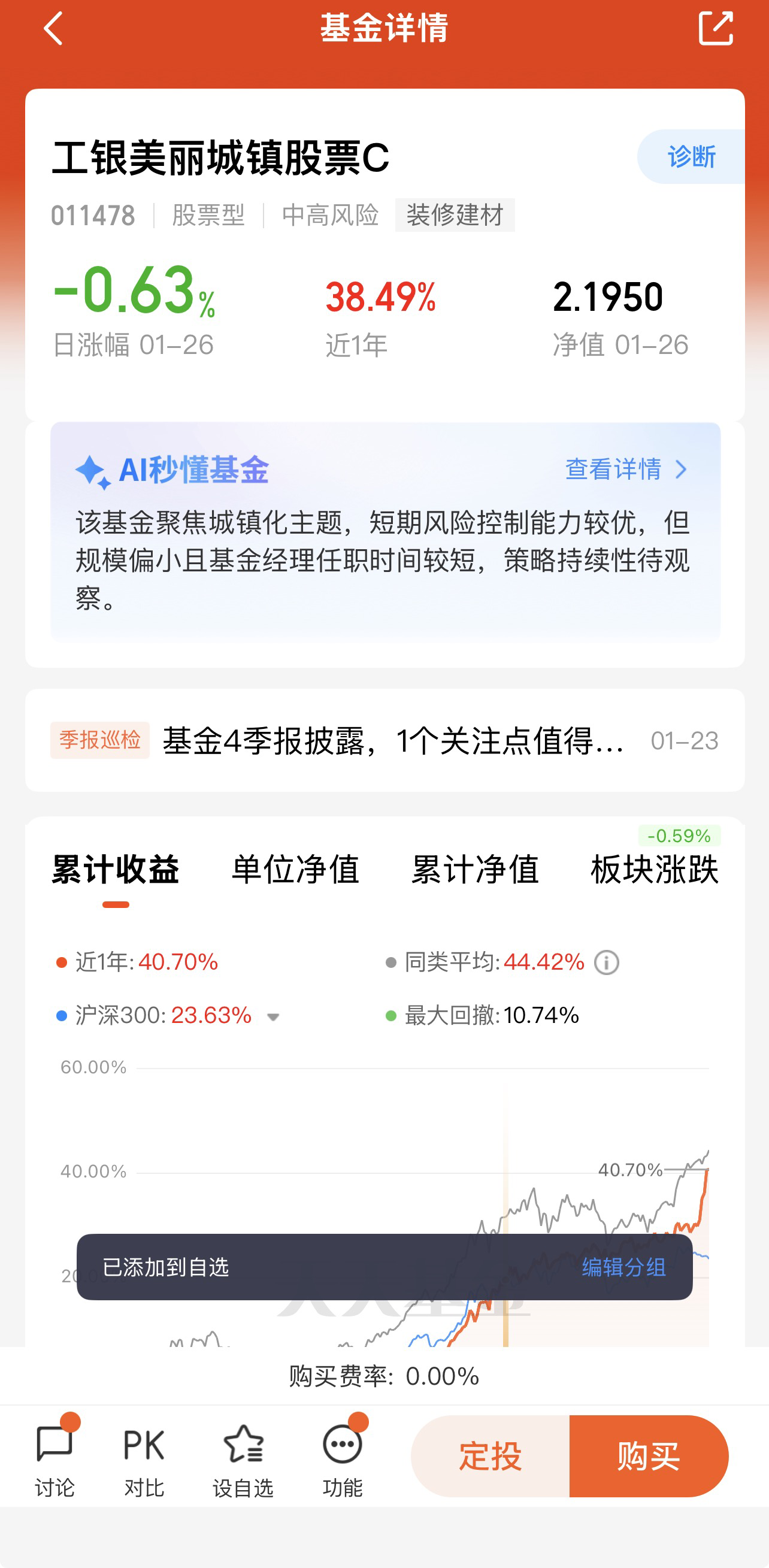 若投资者认可新型城镇化、地产链复苏、消费升级等长期逻辑,且希望通过基金分散个股风险、精准布局赛道,该基金可作为核心配置标的。其持仓高度聚焦主题内优质龙头,能有效捕捉赛道收益与个股收益。
