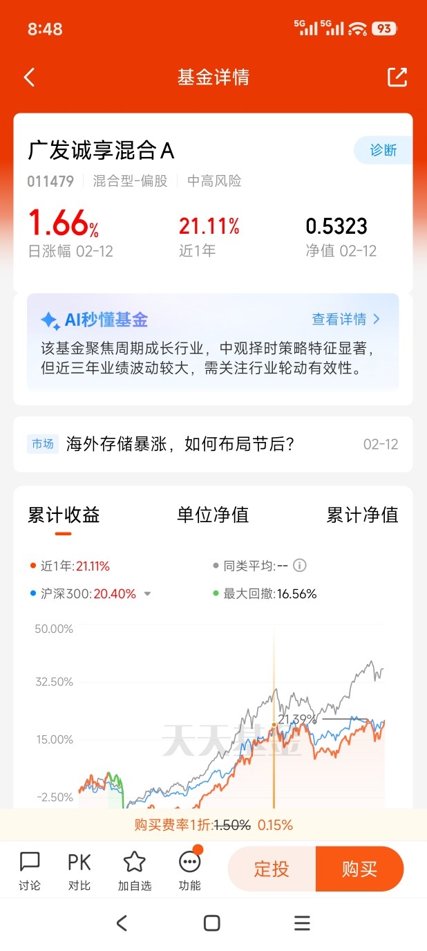 今天阳光电源涨快3个点,光伏板块这么热闹,这基拿着8个多点的仓位,结果净值就动了一点点,哎