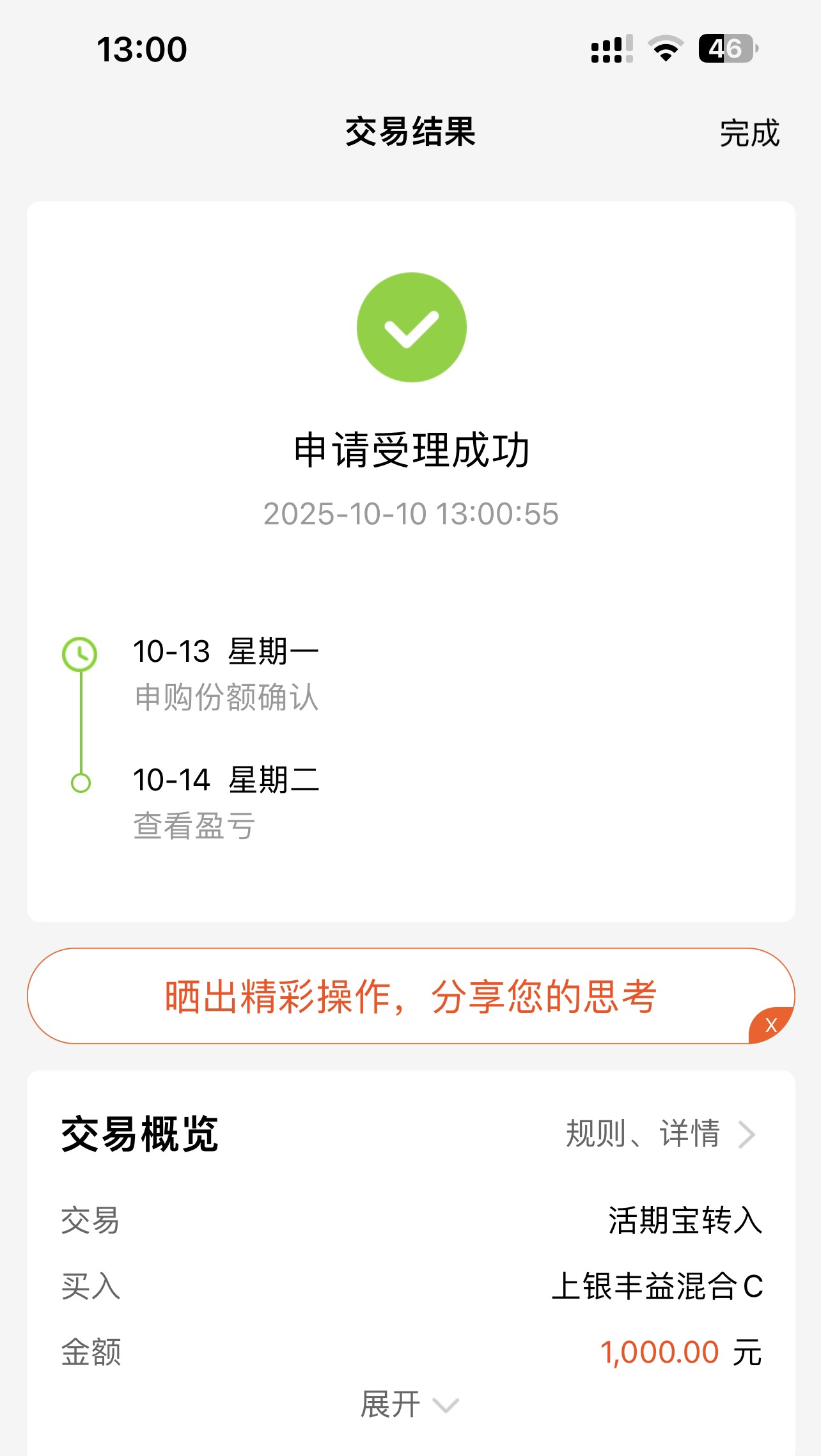 最近市场震荡加剧,但我手里的 上银丰益混合C表现让我很安心。前期已建仓 1000元,截至目前已经快有 6个点的收益,回报稳稳的,心里踏实不少。