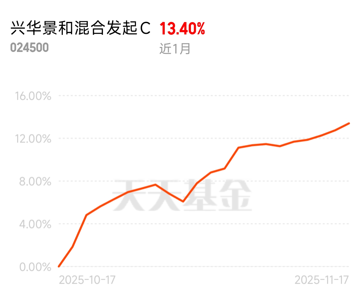 兴华景和基金成立以来净值增长 27.43%,夏普比率表现也很领先,昨天市场回调还逆势涨 0.58%,十二连涨稳稳拿下。它依托严谨的研究体系控制风险、精选个股,风控能力肉眼可见的优秀。$兴华景和混合发起C$