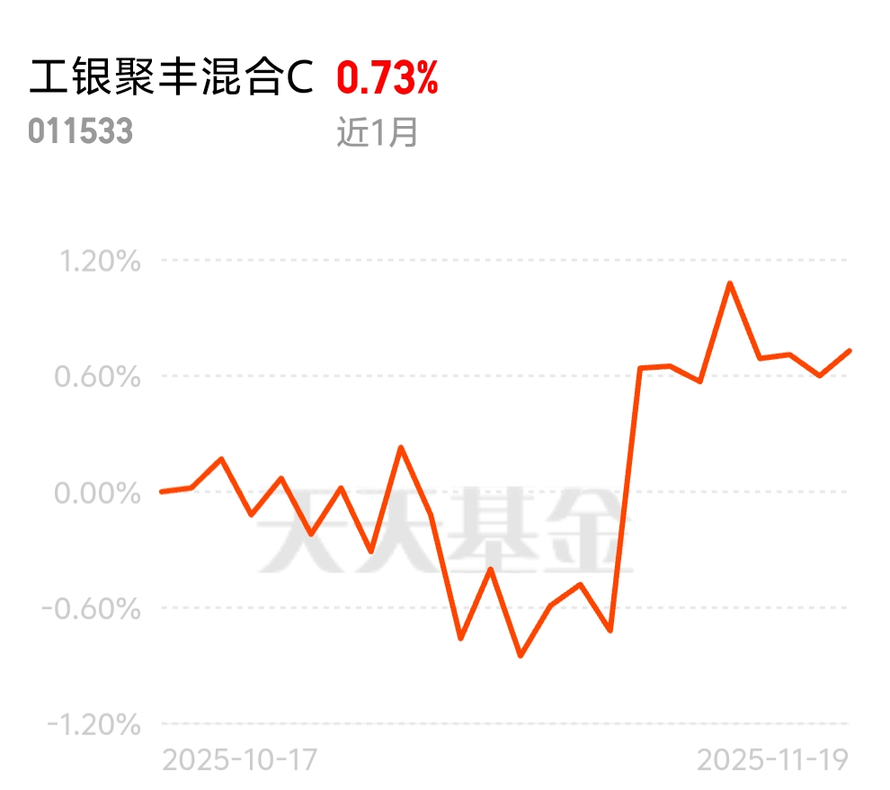 均衡价值+固收,不赌单一风格。当前市场轮动快,这种策略反而踏实,各行各业都布点,总能踩中热点。$工银聚丰混合C$