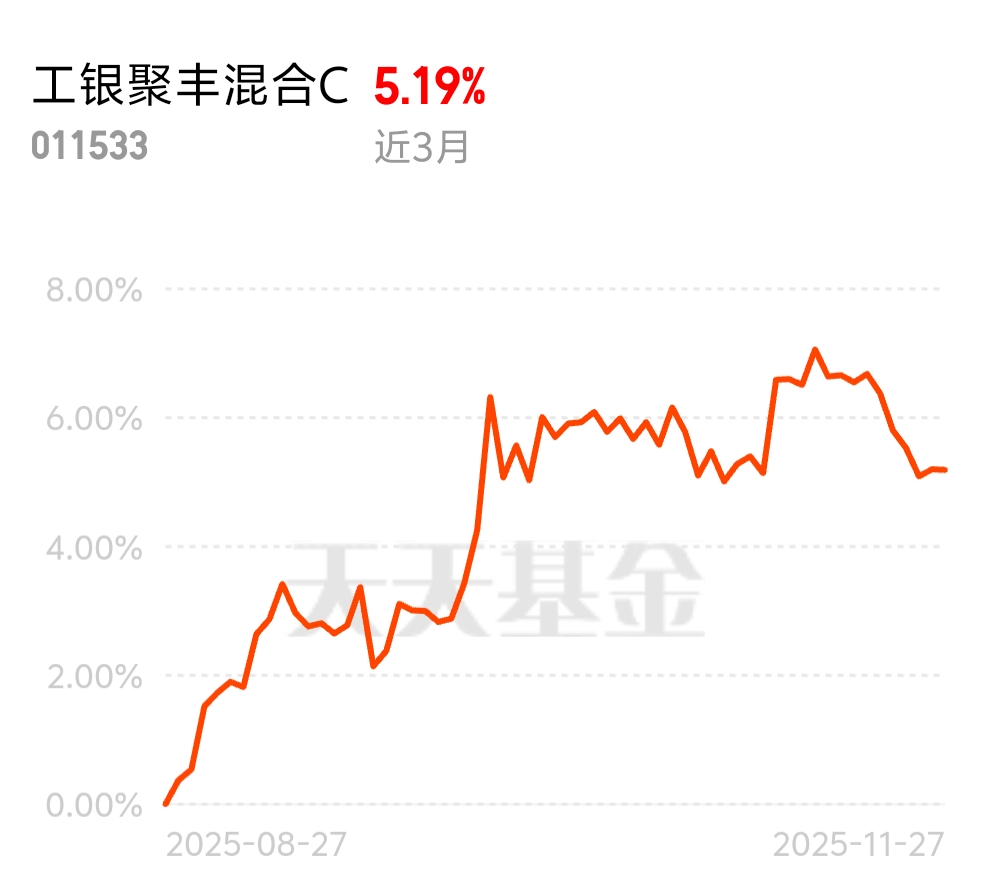 过去三个月涨了5.19%,跑赢基准和沪深300,均衡策略在震荡市里效果出来了。$工银聚丰混合C$