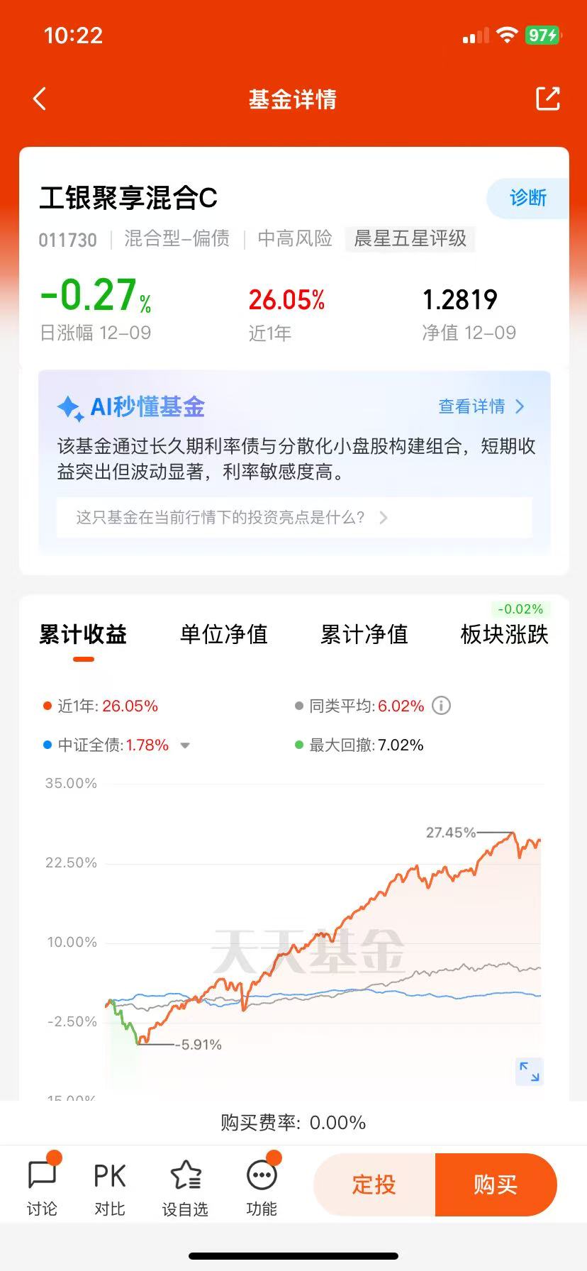 特别值得关注的是,工银聚丰混合基金在长期业绩的稳定性方面表现突出。其近三年收益率不仅绝对值较高,且在同类排名中始终保持在前10%以内,体现了"均衡价值+固收"策略的长期有效性。相比之下,一些采用激进策略的基金虽然短期收益较高,但长期表现往往不够稳定。