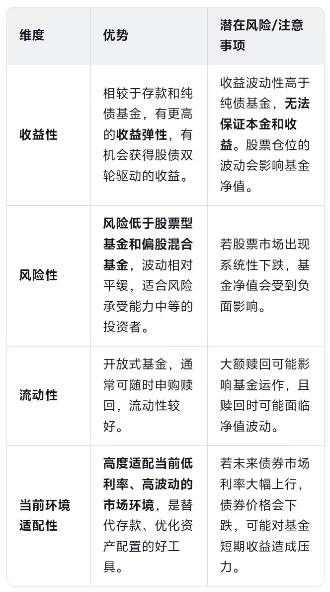 风险偏好:风险承受能力中等,希望获得比存款和纯债基金更高收益,但又不愿承担股票型基金大幅波动的投资者。
