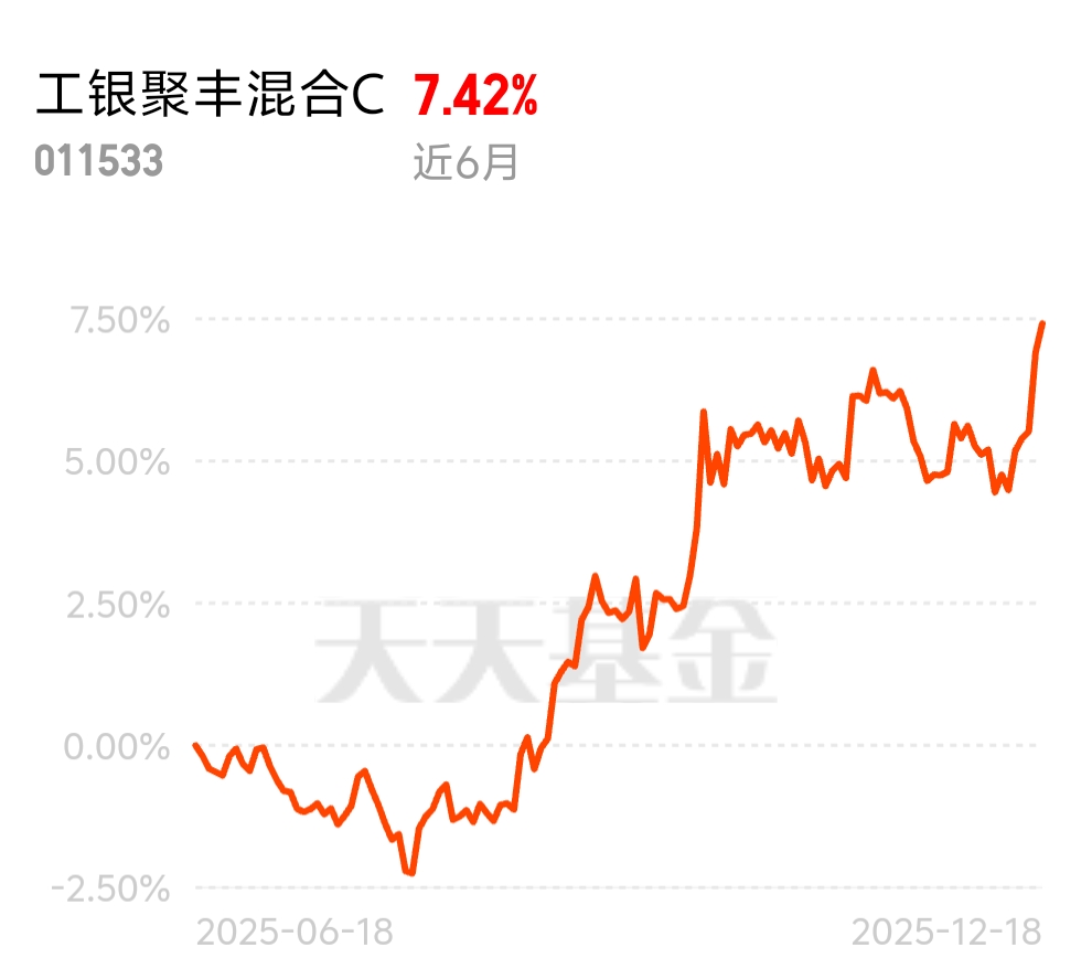 政策求稳,经济慢复苏,均衡配置最应景。聚丰不过度暴露单一风险,追求确定性收益。固收+策略在本轮调整中显示出韧性。$工银聚丰混合C$