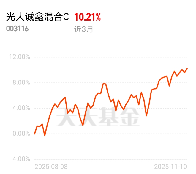 近期科技、消费这些赛道轮流发力,混合基金的优势越来越明显。光大诚鑫混合C紧跟市场