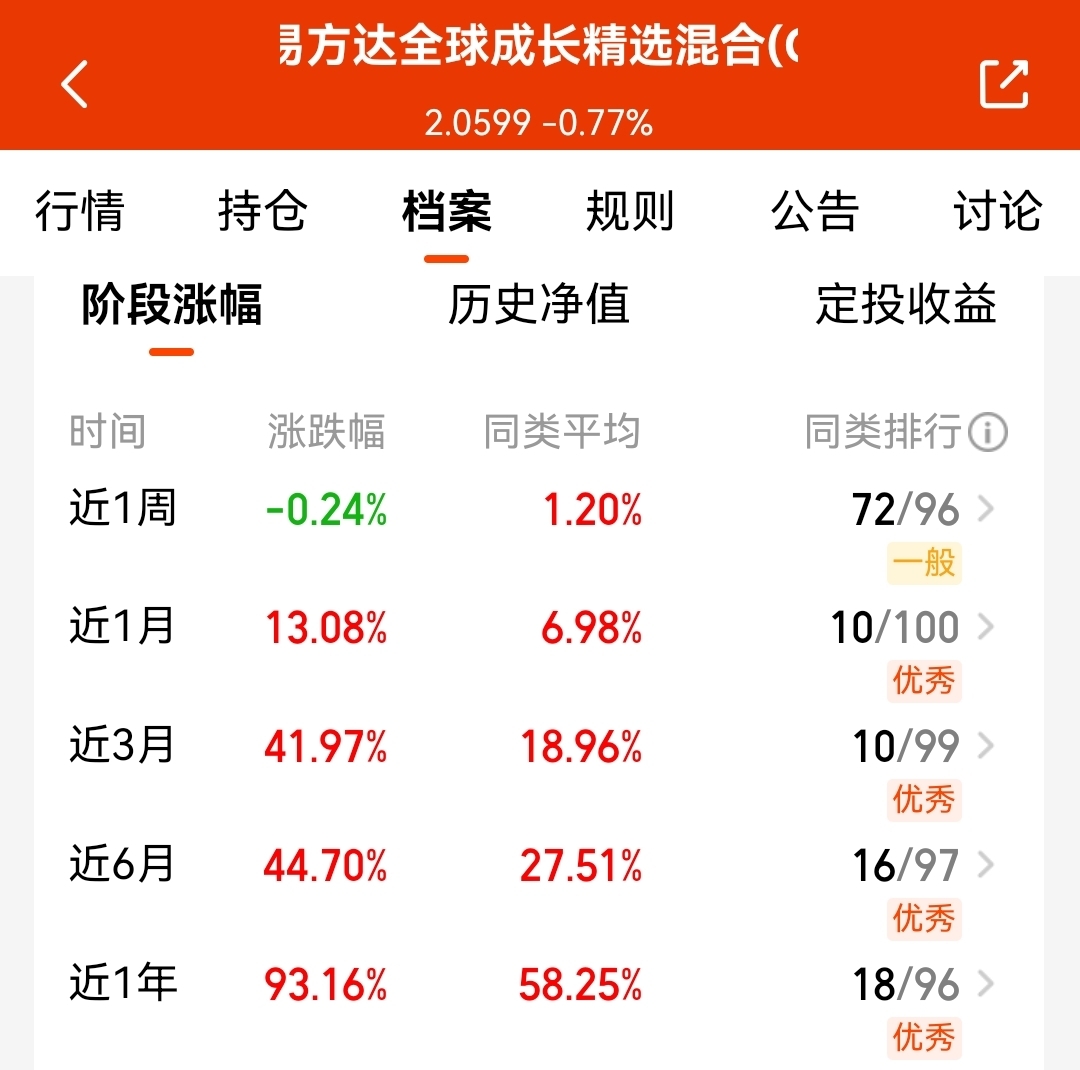 目前行情下,不确定性还在,而这支$易方达全球成长精选混合(QDII)人民币C$,
