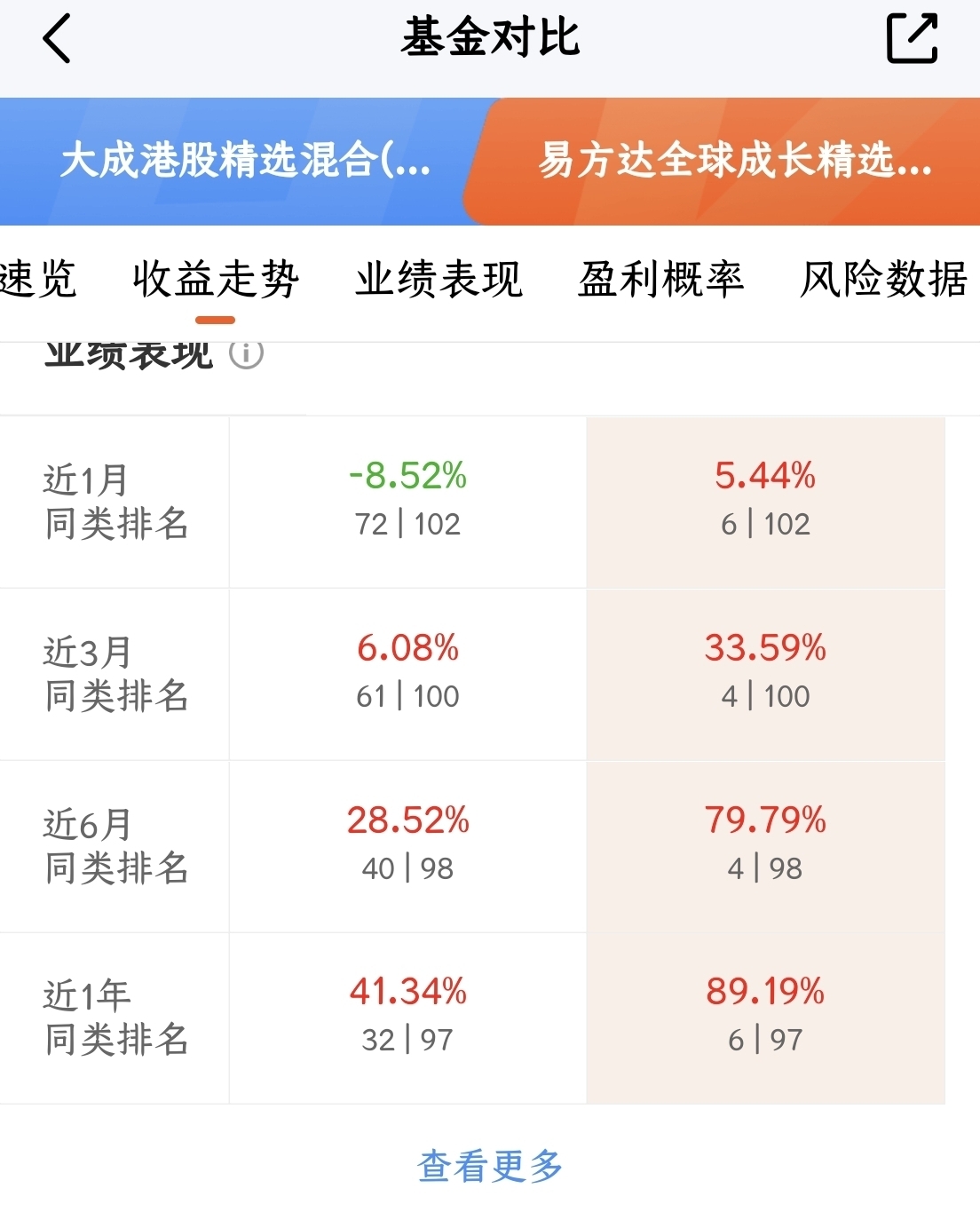今天股市行情不错,高开高走,科技板块也终于回暖了。单一可以科技板块,震荡风险比较大,不妨看一些全球科技,$易方达全球成长精选混合(QDII)人民币C$ 投资全球科技不仅有a股,港股还有美股,可以躲避局部地区风险,而且该基业绩也比较优秀,远超同类竞品同期涨幅。