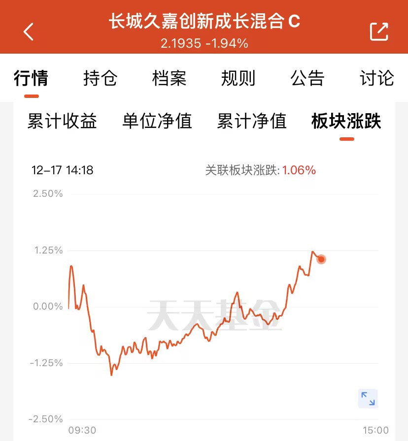 板块轮动快,操作难度拉满。但商业航天板块靠利好撑腰,16 个交易日涨超 20%,还刷新了新高。长城久嘉 C 精准布局这条赛道,近一年业绩领跑同类。本轮一度走出 8 连涨,昨天小幅回落,今天就探底回升强势反包,走势相当能打。这种好机会可不能错过,我今天果断出手入场!