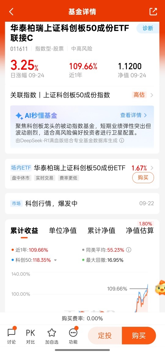 今天科创50算是彻底点燃了科技热情,盘中暴涨近5%,半导体板块原地起飞,这势头看得人眼馋。核心还是现在市场偏好变了,科技板块市值占比都超过金融加房地产了,政策还在大力支持创新,长期逻辑很扎实。但问题来了,单个科技股要么门槛高,要么波动大,普通散户真不好把握。我之前布局的华泰柏瑞就很省心,近期涨得特别猛,昨天一天就涨了3个多点,它跟踪的是科创50指数,把里面市值最大、流动性最好的科技股都包含了,不用研究细分赛道,场外就能上车,跟着指数喝汤就行,风险还比单买股票小。