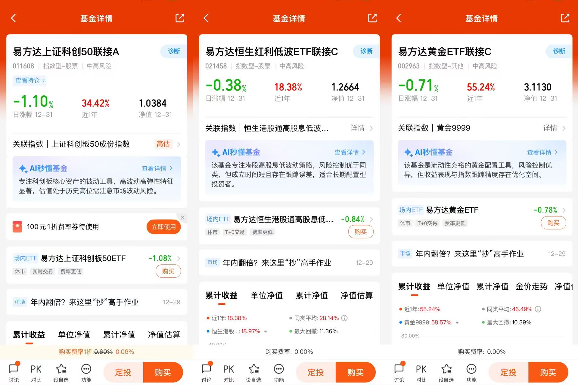 科创板门槛高,需要50万资金和2年交易经验,直接开户不仅麻烦,而且个股波动极大,踩雷风险高。易方达上证科创50联接A作为ETF联接基金,完美解决了这个问题。它不需要有股票账户,却能紧密跟踪科创50指数(代码:000688),实现了“场外轻松布局,场内核心资产”的完美结合。数据显示,该基金超过90%的资产投资于目标ETF,与指数走势高度拟合,真正做到了“指哪打哪”。