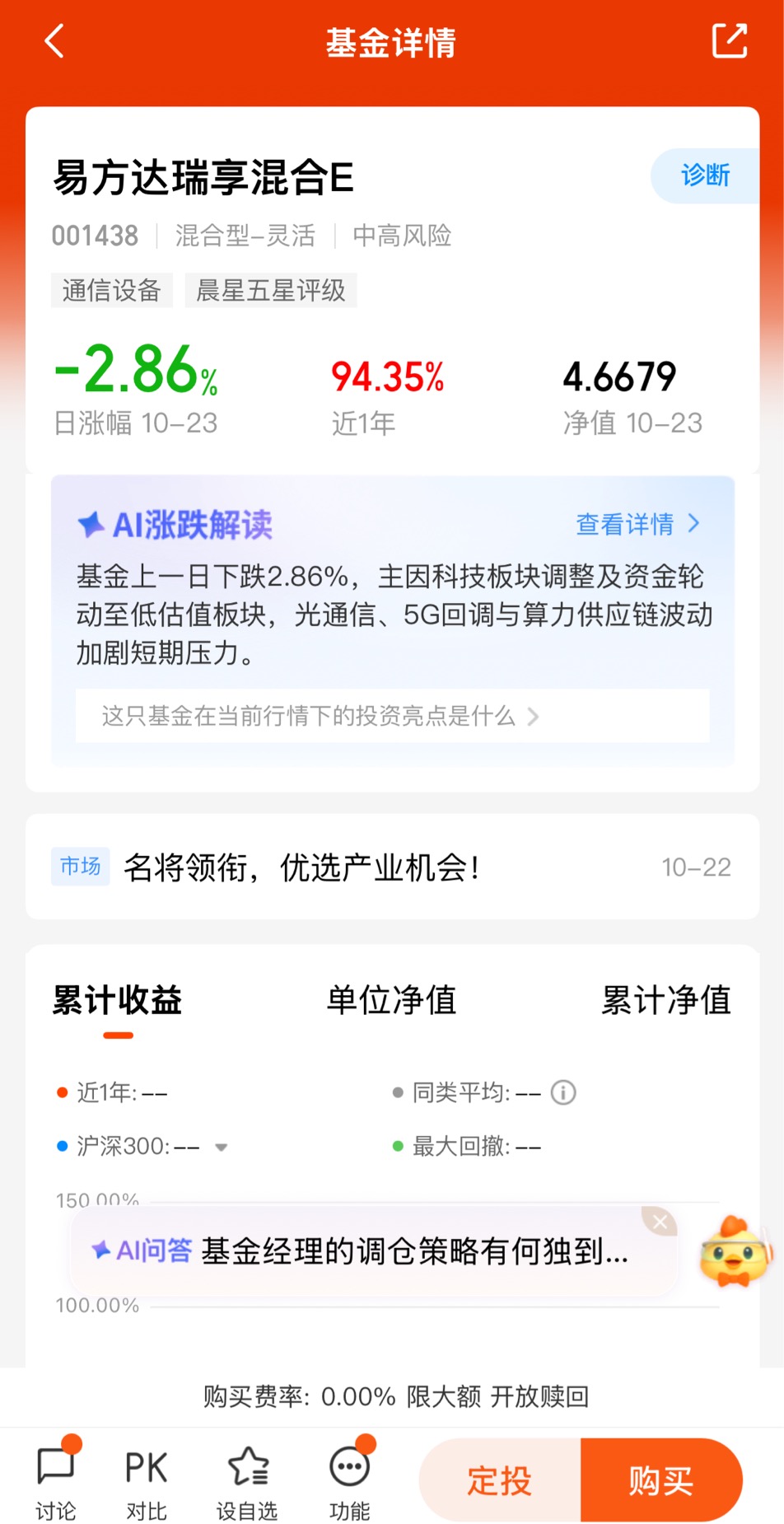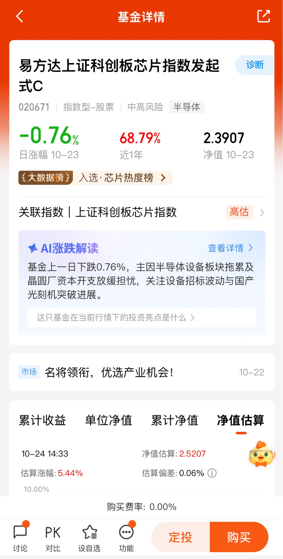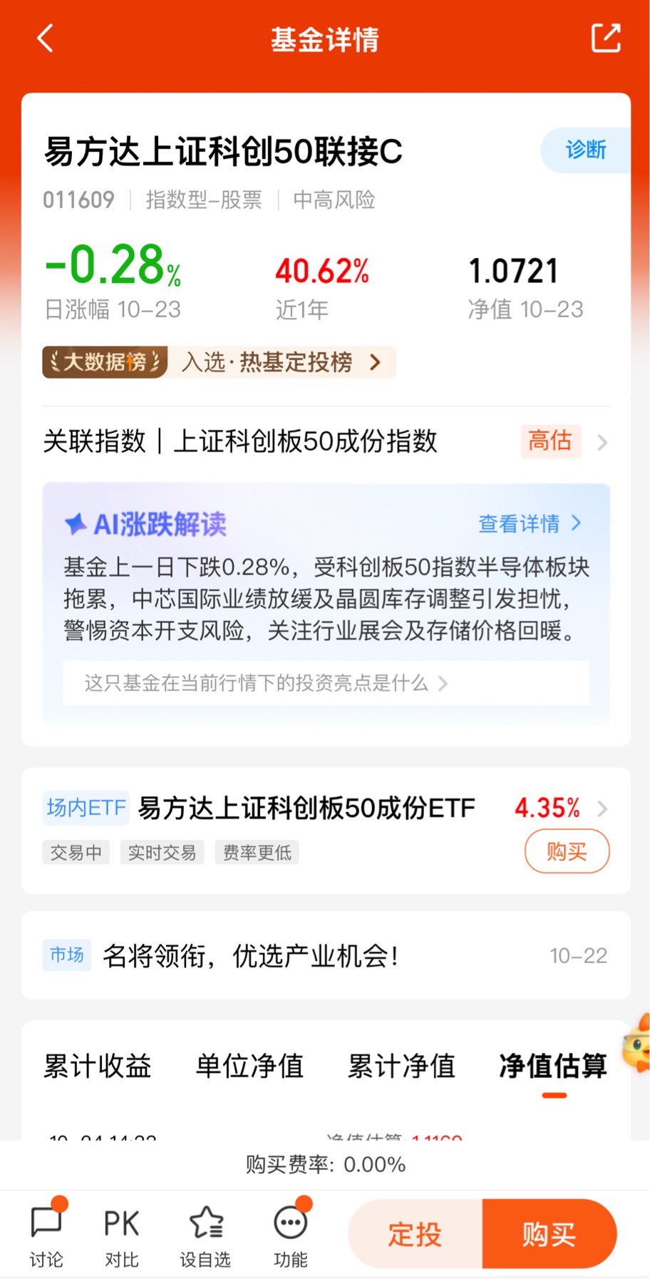 低费率优势:易方达上证科创50联接C基金的管理费和托管费较低,降低了投资者的成本。例如,管理费率为0.50%,托管费率为0.10%,相比同类基金具有一定的费率优势。