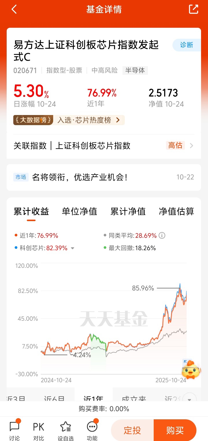 该基金通过投资易方达上证科创板50ETF,紧密跟踪科创50指数(成份股涵盖AI算力、半导体、高端装备等成长领域),三季度末重仓股包括中芯国际、寒武纪、海光信息等科技龙头,直接受益于三季报业绩超预期。