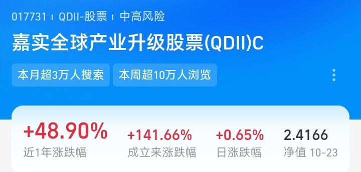 宝子们,今日市场涨势超带感!$嘉实全球产业升级股票发起式(QDII)C$更是大放