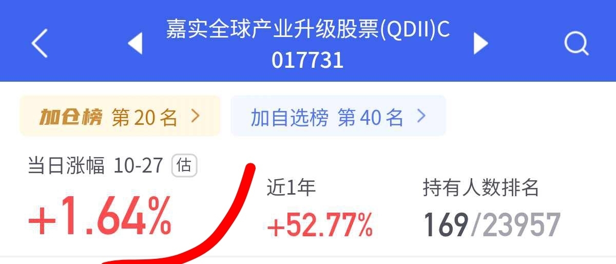大盘突破4000了,今天吃大肉了,我看这个$嘉实全球产业升级股票(QDII)C$ 表现也优秀今天1.64%,核心覆盖英伟达、美光科技等顶尖科技企业。2024年借美股半导体获利,今年又纳入中芯国际等港股标的,把握港股科技行情。近一年涨幅超52%,显著跑赢同类。未来AI资本开支带动芯片需求,叠加降息行情要到了,继续看好接下来的行情!