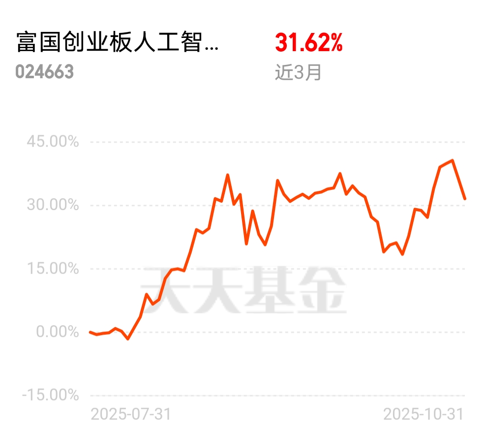 我同时拿着易方达科创板50和富国创业板人工智能ETF联接C,后者近6个月涨了43