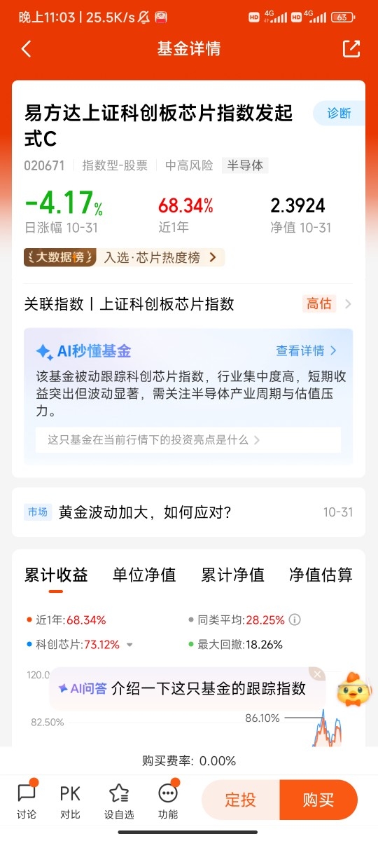 成长板块在政策利好的推动下,尤其是美联储降息和科技政策的双重加持下,修复前景值得期待。而布局易方达上证科创板芯片指数发起式C(020671),则是投资者分享芯片产业发展红利、实现资产增值的明智之选。在投资过程中,投资者应保持理性,根据自身的风险承受能力和投资目标,合理配置资产,以实现长期稳健的投资回报。@易方达基金