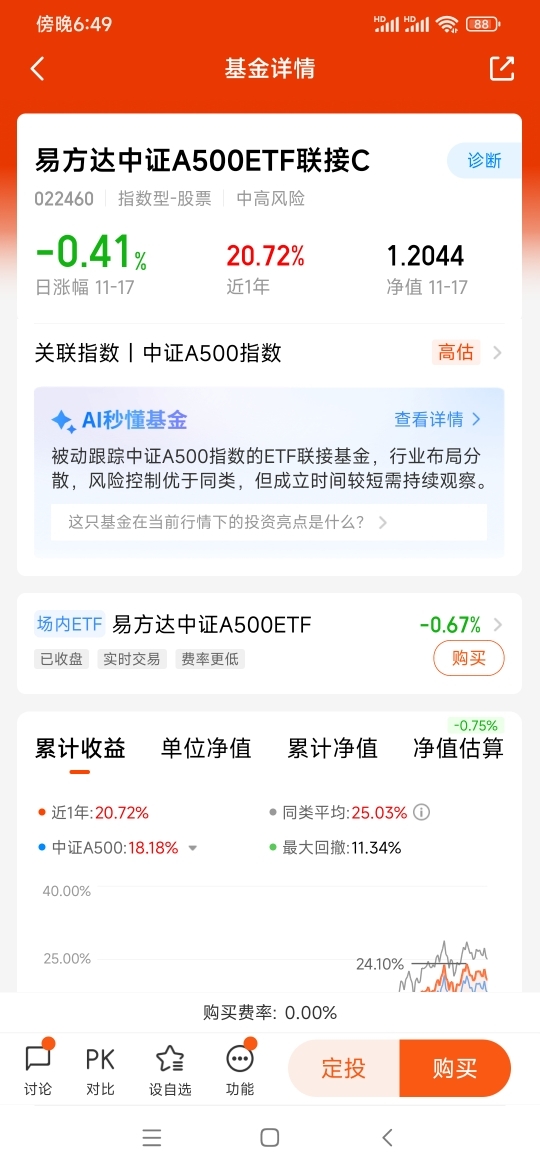 去年10月入手的易方达上证科创50联接C(011609),现在都赚了35.53%,属实超出预期。这只基跟踪的科创50指数,挑的都是科创板里市值大、流动性好的优质企业,踩中了未来风口赛道。基金经理林伟斌、成曦都是老司机,经验够足,打理指数基金让人放心。而且费率特亲民,持有满7天就免赎回费,对咱们普通人太友好了。