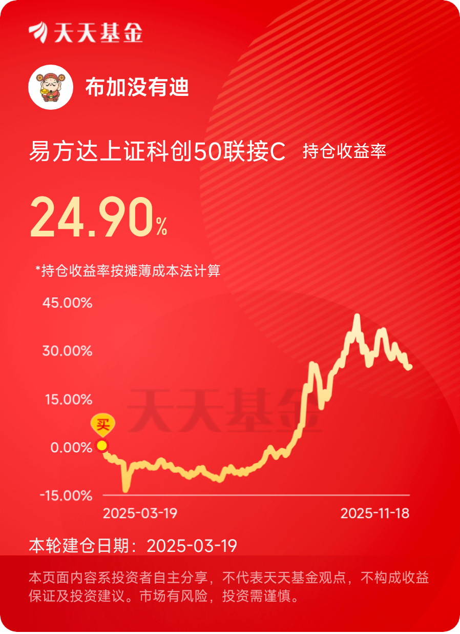 4000点的震荡正是布局优质资产的好时机,当前科创50指数估值处于近三年低位,而国产替代、AI算力等行业逻辑持续强化。我会继续坚持“回调超5%小批量加仓”的策略,依托这只基金的低费率、高灵活、强跟踪优势,在波动中摊薄成本,与硬科技赛道共成长,这份基于优质体验和扎实收益的信心,让我在市场起伏中始终从容不迫。@易方达基金 #晒收益#