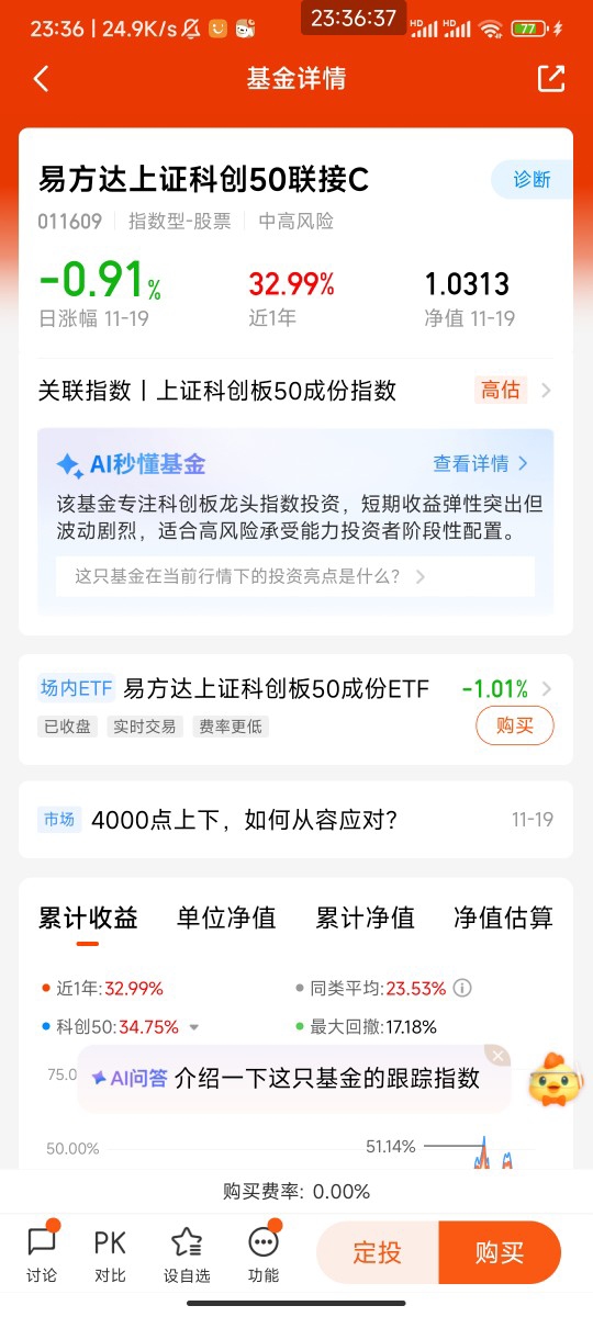 #热点快闪:4000点上下,如何从容应对?# $易方达上证科创50联接C$