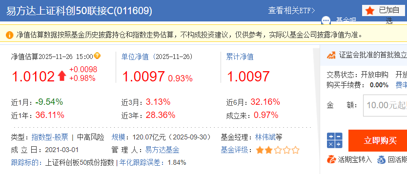 科创 50 当前 PE 约124.30 倍,虽绝对值较高,但考虑其高成长性,PEG 已降至 1.34,处于合理区间