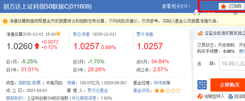 科创 50 当前 PE 约124.30 倍,虽绝对值较高,但考虑其高成长性,PEG 已降至 1.34,处于合理区间