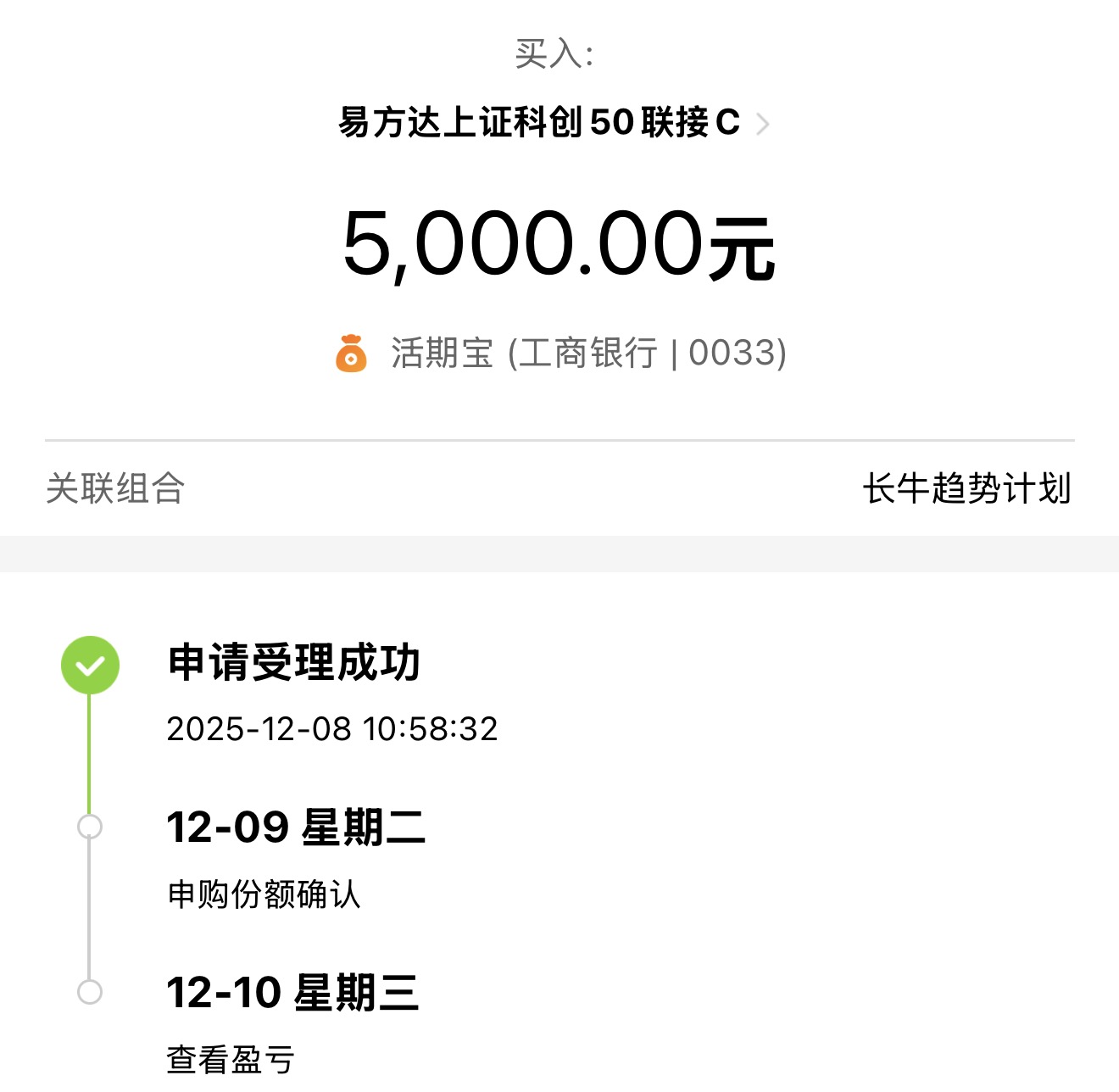 加仓$易方达上证科创50联接C(OTCFUND|011609)$5000元!