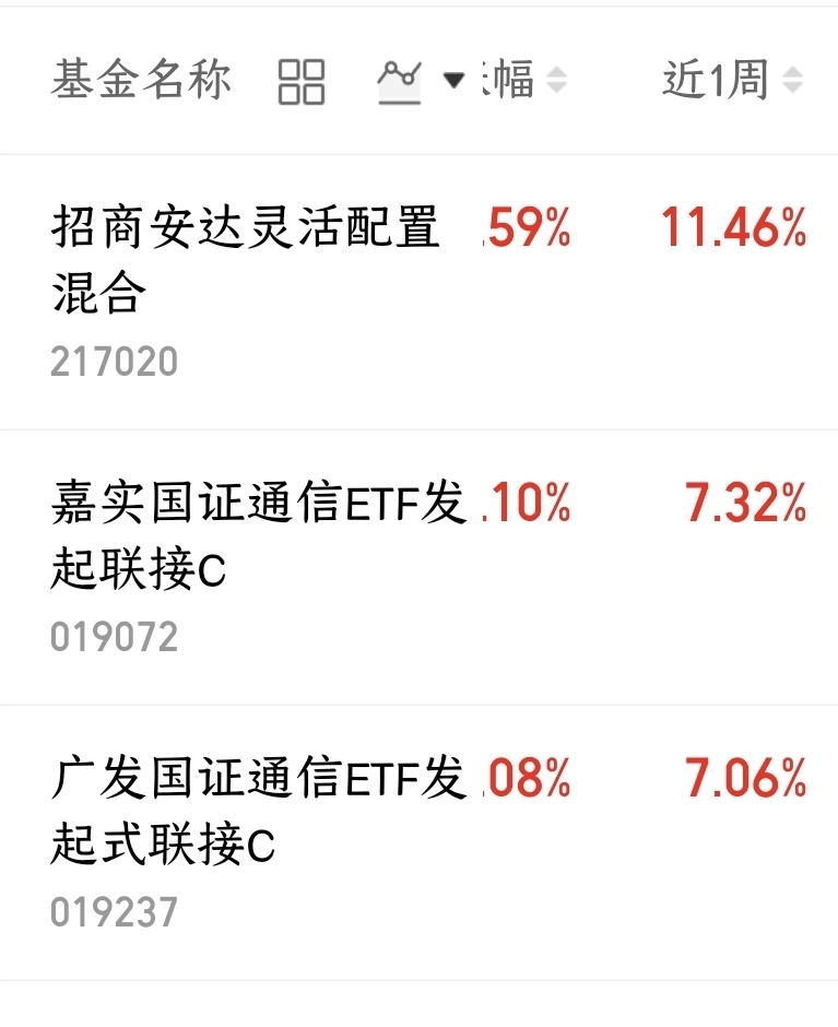 $广发国证通信ETF发起式联接C$ 近一周涨幅7.06%