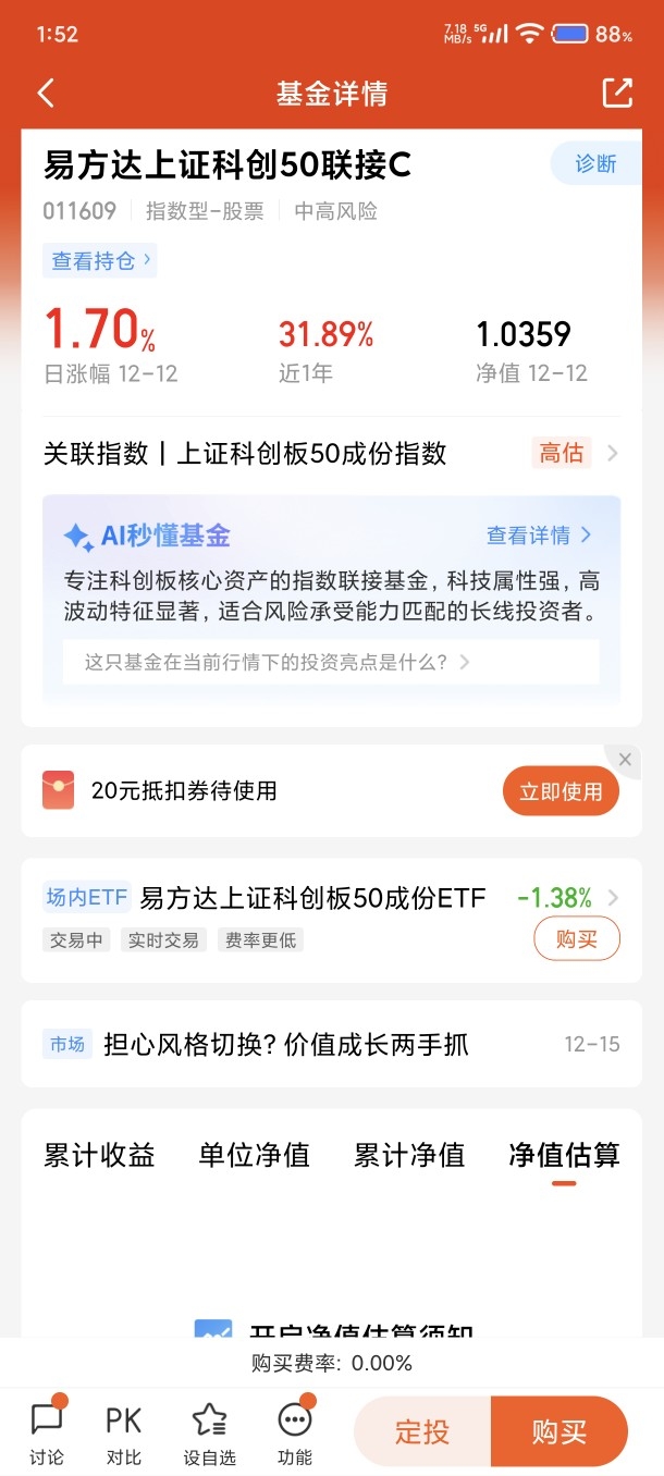 $易方达上证科创50联接C$ @易方达基金 #晒实盘# $易方达上证科创50联接A$