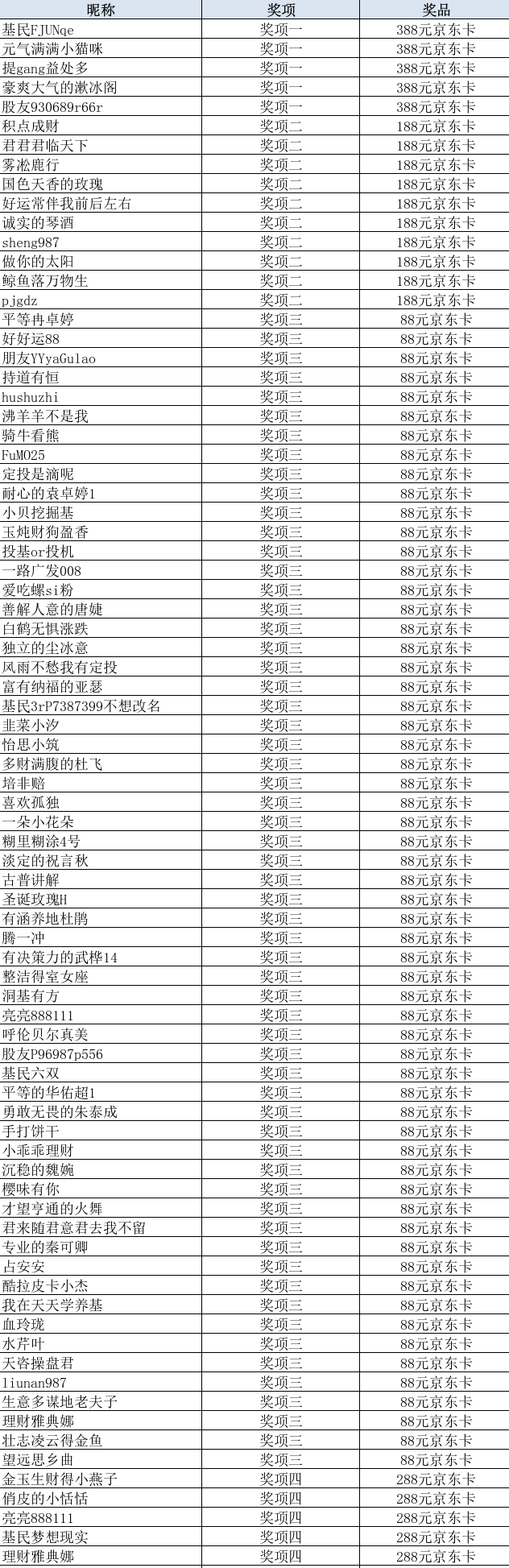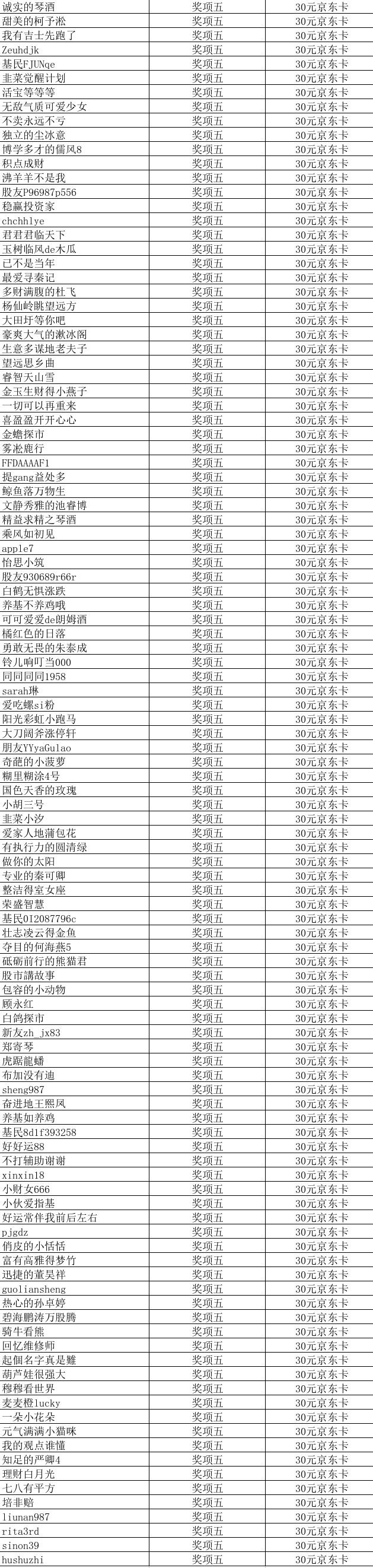 为回馈小伙伴们的热情,现根据活动规则公布获奖用户名单: