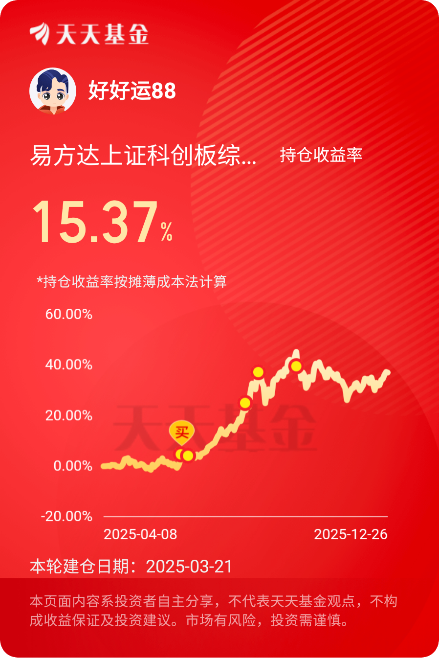 今年我最得意的操作是坚定持有:$易方达上证科创板综合ETF联接C(023730)$,最终收获了15.37%的收益。#晒收益#