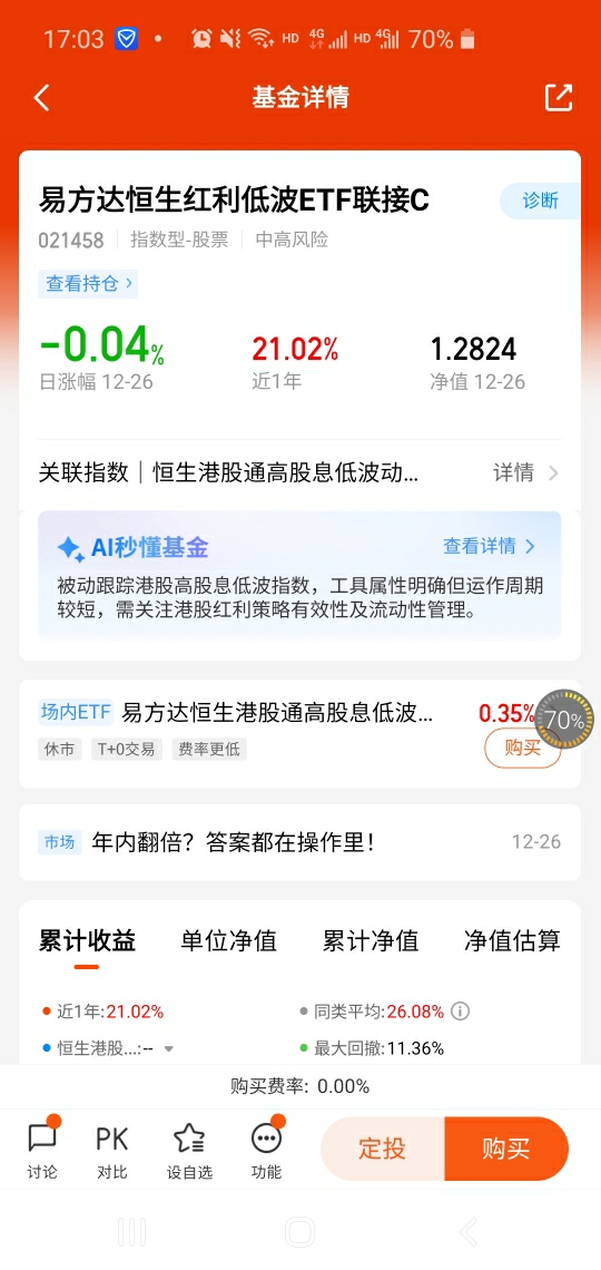 $易方达恒生红利低波ETF联接C(OTCFUND|021458)$