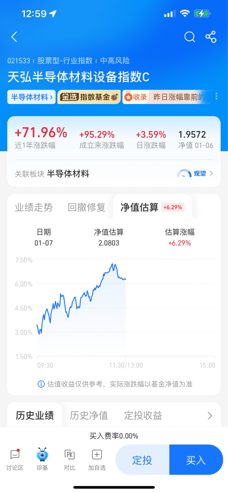 天弘半导体材料设备没有那些乱七八糟的申购赎回补贴,干干净净,交易费用透明,我心里踏实。