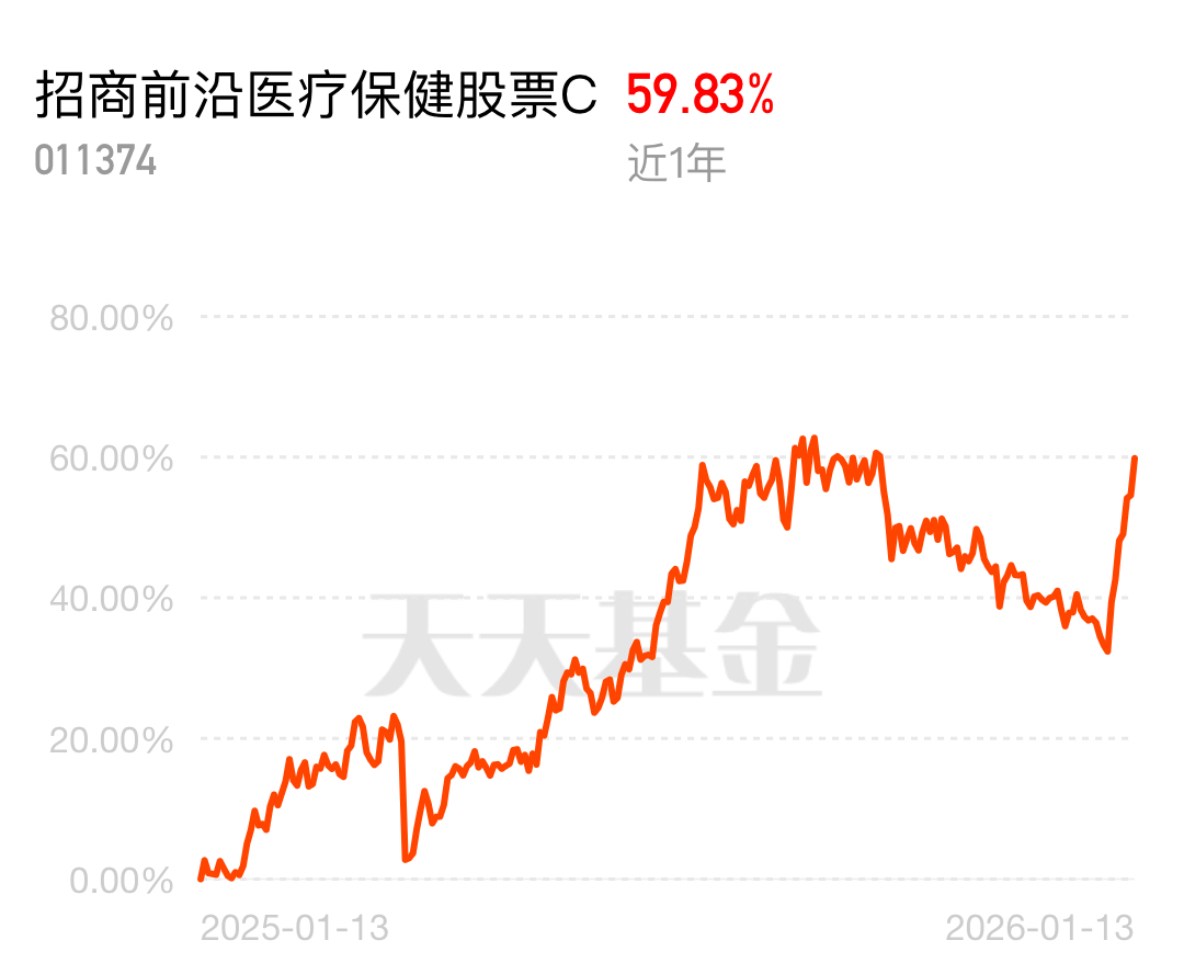 医药板块量价齐升,成交额持续放大,资金进场迹象明显,市场热度升温。医药经历回调后趋势逐步明确,日收益 3.4% 很有吸引力,看好创新药 + 医疗器械方向,招商前沿医疗保健股票 C 近 1 年 59.83% 实力在线。$招商前沿医疗保健股票C$