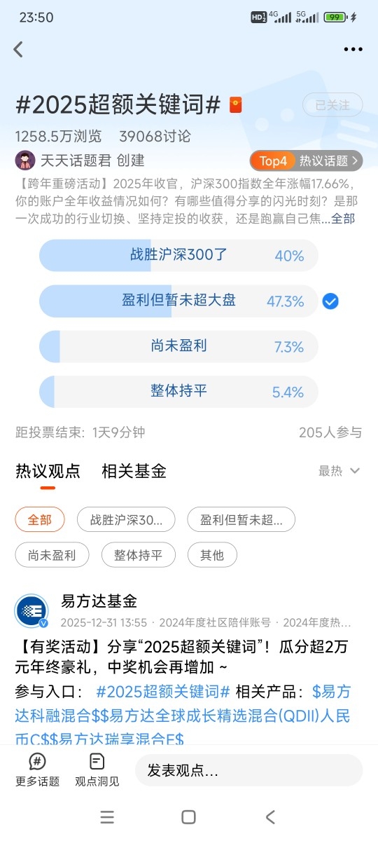 回头看2025年的市场,那些赚了超额收益的人,从来都不是最会追热点的,而是最能沉住气的。这一年的投资经历也让我彻底明白,投资从来都不是一场短跑,而是一场马拉松。短期的涨跌都是沿途的风景,真正能跑到终点的,都是带着长期视角,守着价值、熬住时间的人。2025年把长期视角当作核心关键词,让我赚了收益,更磨了心态,这大概就是投资最大的收获。@易方达基金