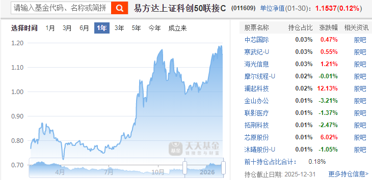 $易方达上证科创50联接C(OTCFUND|011609)$
